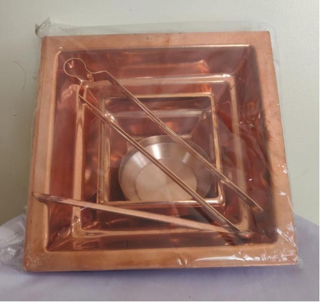 An Agnihotra kit is a specialized set of tools designed for performing Agnihotra, a Vedic fire ritual. This kit typically includes a unique copper pyramid, essential medicinal herbs, and the required mantras.