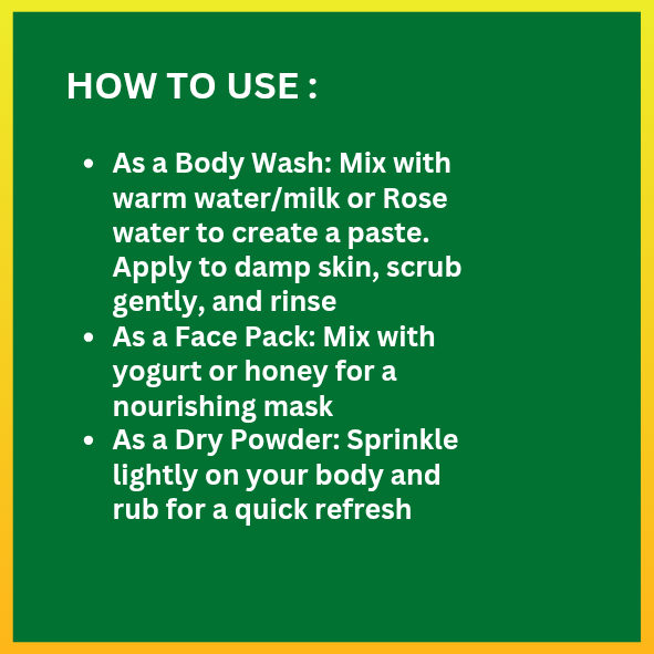 - Ingredients like green gram and turmeric gently scrub away dead skin, giving you that natural glow.
