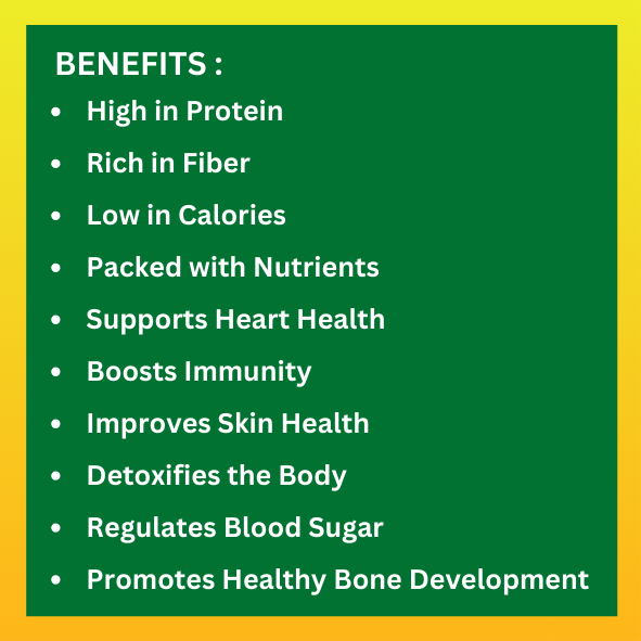 - Rich in essential nutrients like folate, iron, magnesium, potassium, and vitamins B1, B2, B3, and B6.